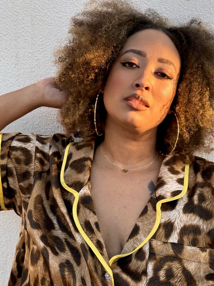 This is how I love to dress. This look is formal enough for you to shut it down at dinner, the office, wherever you find yourself outside and cozy enough to welcome friends over. Made from the highest quality poly charmeuse. Fabric is very show to wrinkle and we know that's important to you. Drawstring pants with working pockets and elastic waist. Shirt has a single pocket. We cut the pants a little longer than usual in case you'd like to pair the look with platforms or the wedge of your choice for summer. Or arrange with us for our internal tailoring salon to hem.