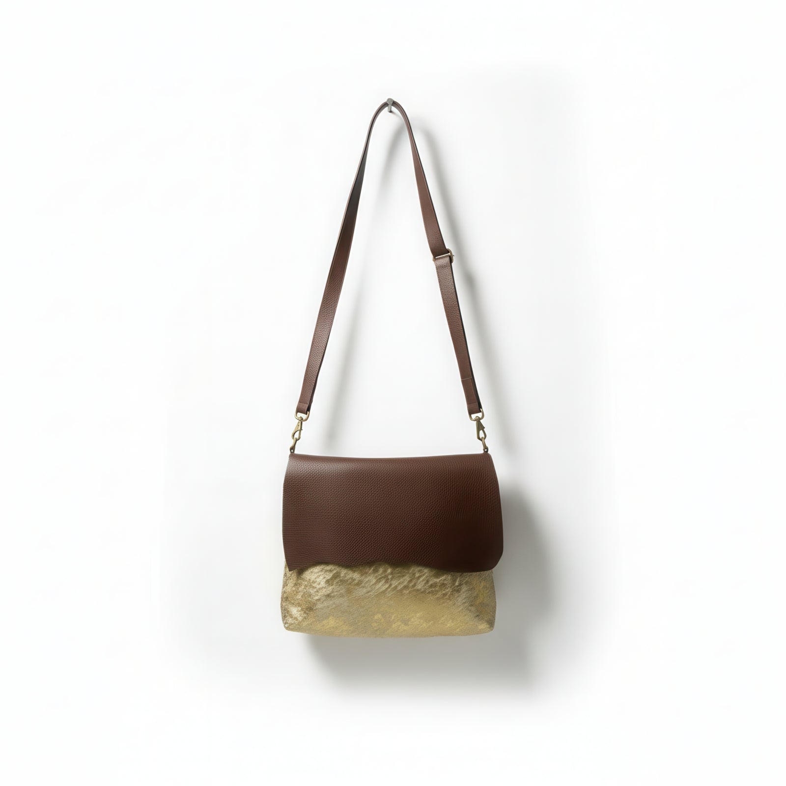 • Natural hair-on-hide exterior — each bag is unique