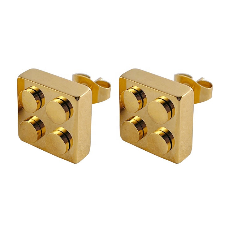 18K Gold Plated Stainless Steel C Shaped Diamond Baggette Earring